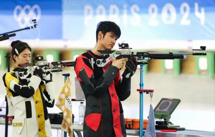 盛李豪今年19岁,三年前的东京奥运会上,不到17岁的盛李豪一鸣惊人夺得男子10米气步枪银牌。