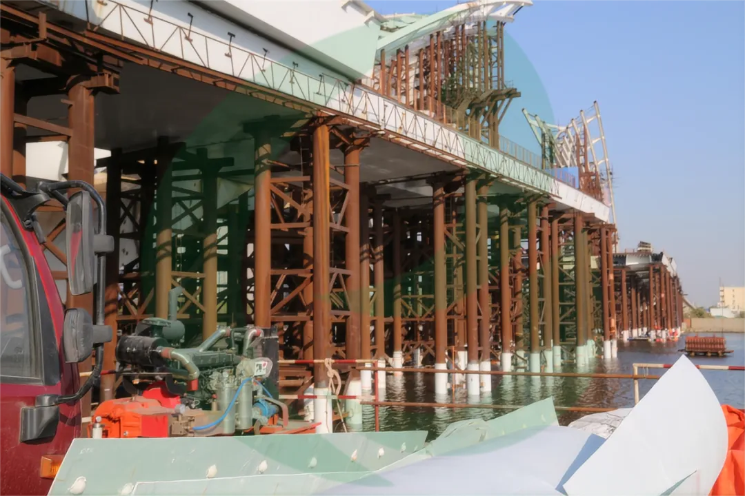 项目简介:天津市安阳道跨海河大桥因航道不能封航致使桥梁不能合拢,位于海河中间的钢管桩支架日益锈蚀,特别是位于浪溅区段的支架锈蚀特别严重。