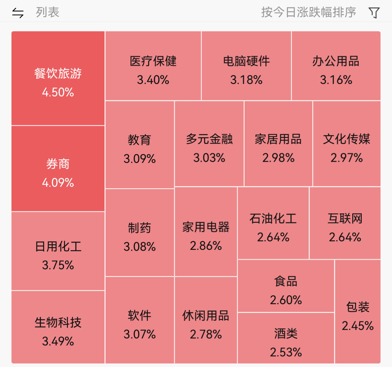 券商股全线爆发,文旅、医疗、教育、传媒行业集体走强,场内超4700股飘红。