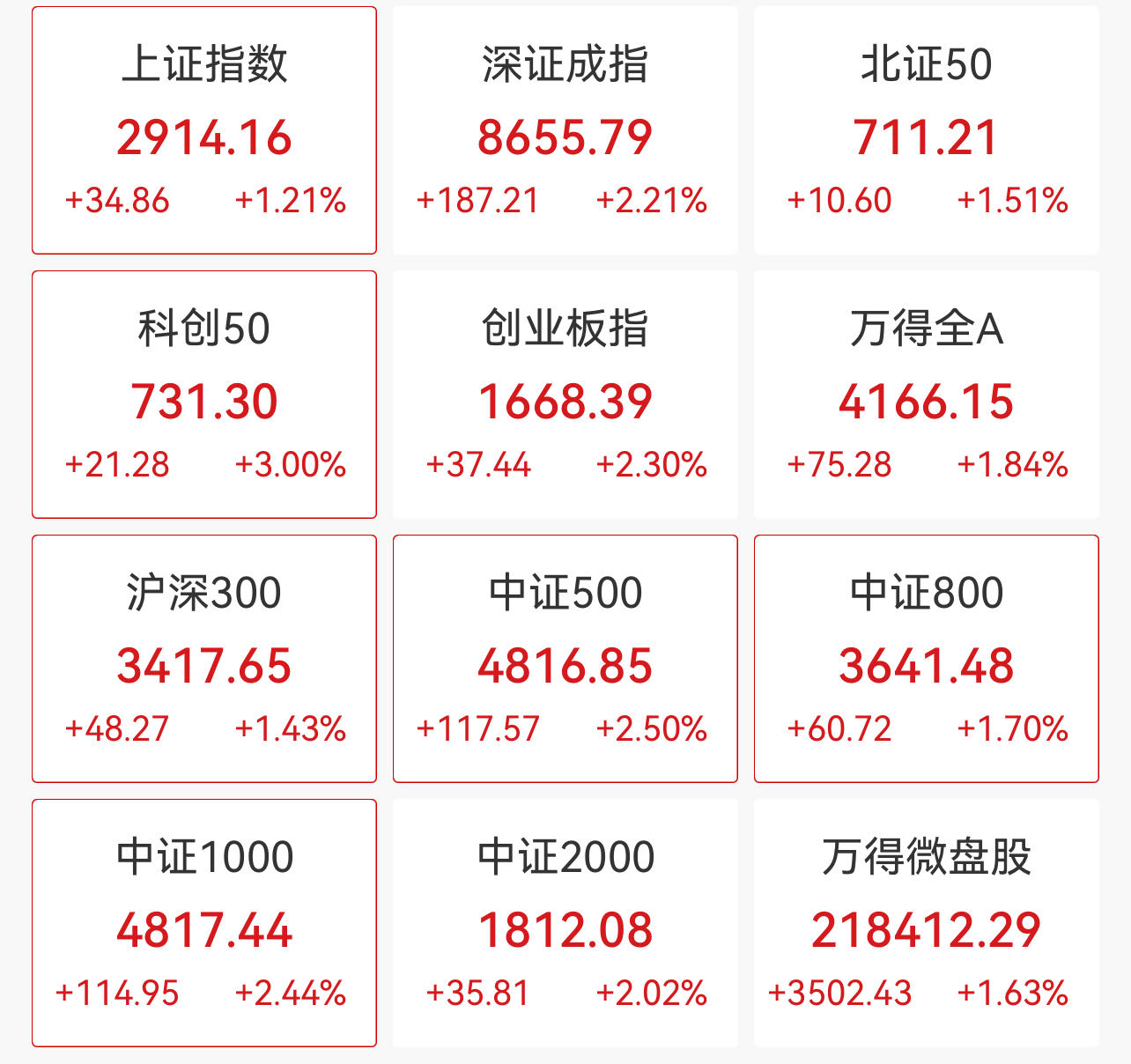 截至记者发稿时,沪指突破2900点涨1.21%,深证成指涨2.21%,创业板指涨2.30%。