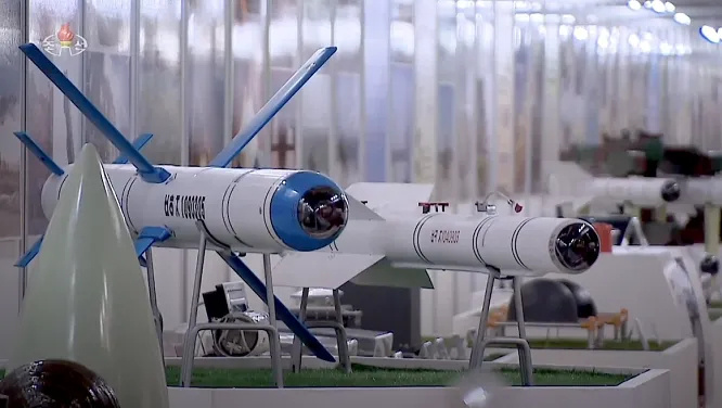 朝鲜国防科学院展示的“火鸟-4”反坦克导弹朝中社
