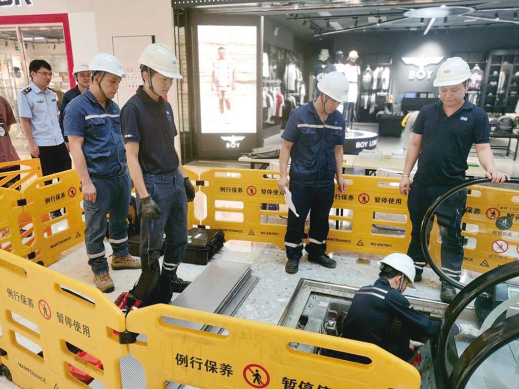日前,广西壮族自治区柳州市市场监管局联合鱼峰区市场监管局及广西特检院柳州分院,共同举办“电梯检验检测开放日”活动。图为检验人员向公众展示一家商场自动扶梯的检验过程。
