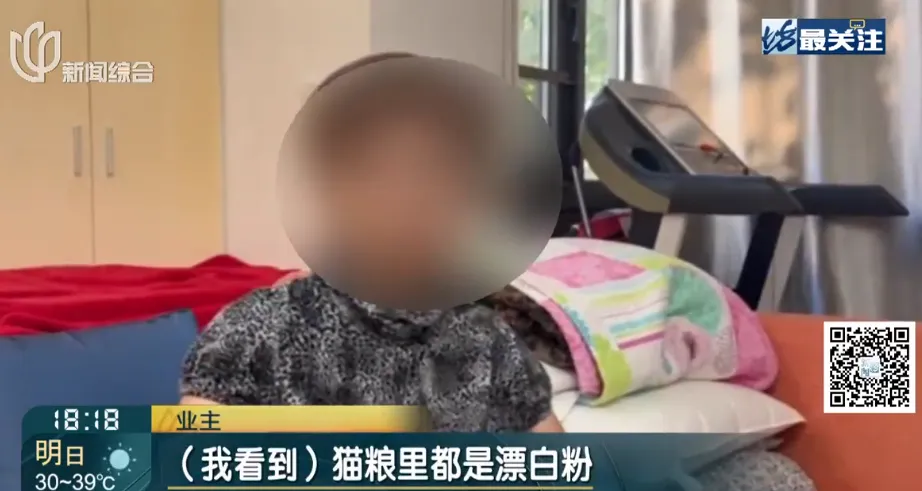 还有的业主说,看到猫粮里洒满了都是液体漂白粉,像泡沫一样的。