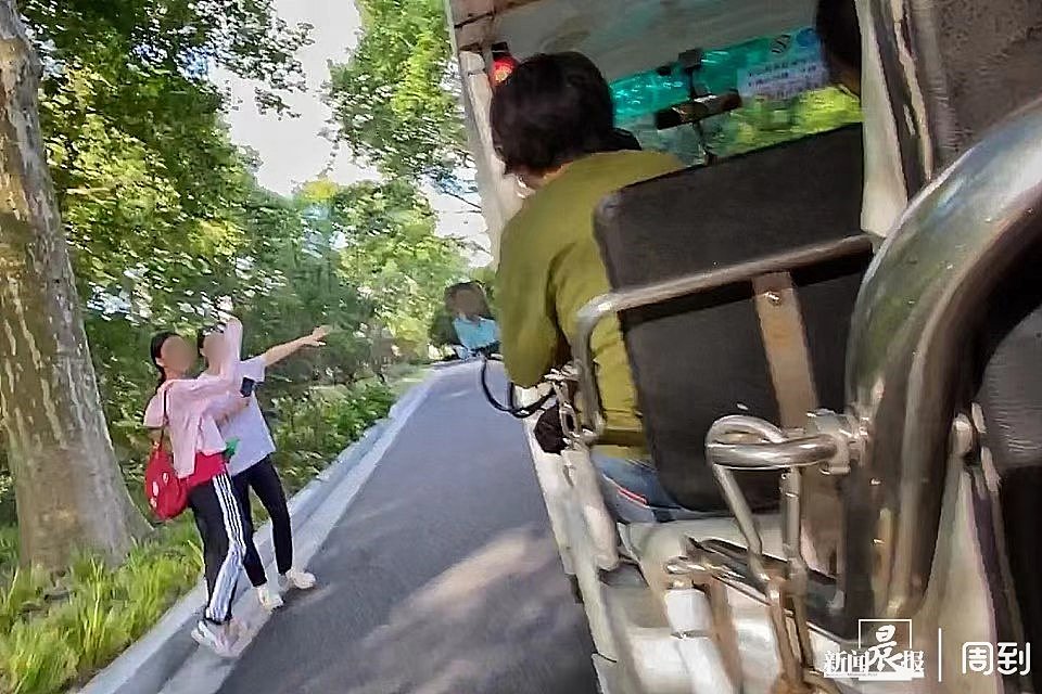 这次,记者上车后,车内仅剩下两个空座。“直接往出口开了哦?”司机一路向出口开去,没开多久,就有两名游客招手上了车,坐上了最后两个座位。