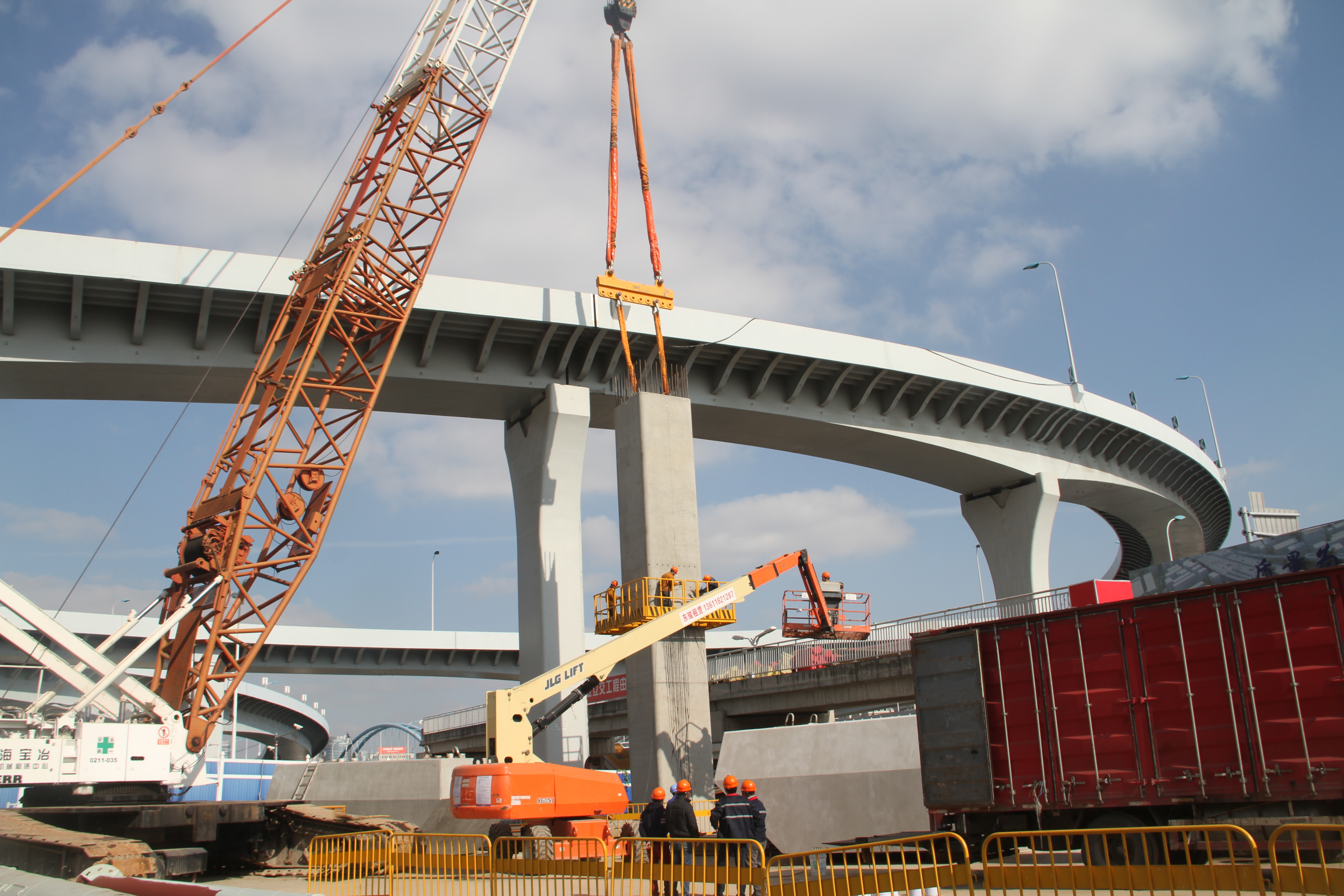 桥梁结构预制装配。北横通道工程中的北虹路立交与天目路立交均为桥梁工程,全长约2.6公里。北虹路立交为北横通道与中环线的互通立交,天目路立交为北横通道与南北高架的互通立交,北横通道工程中大力推广预制装配技术,发展了全预制装配式桥梁结构,预制装配率达到90%以上。