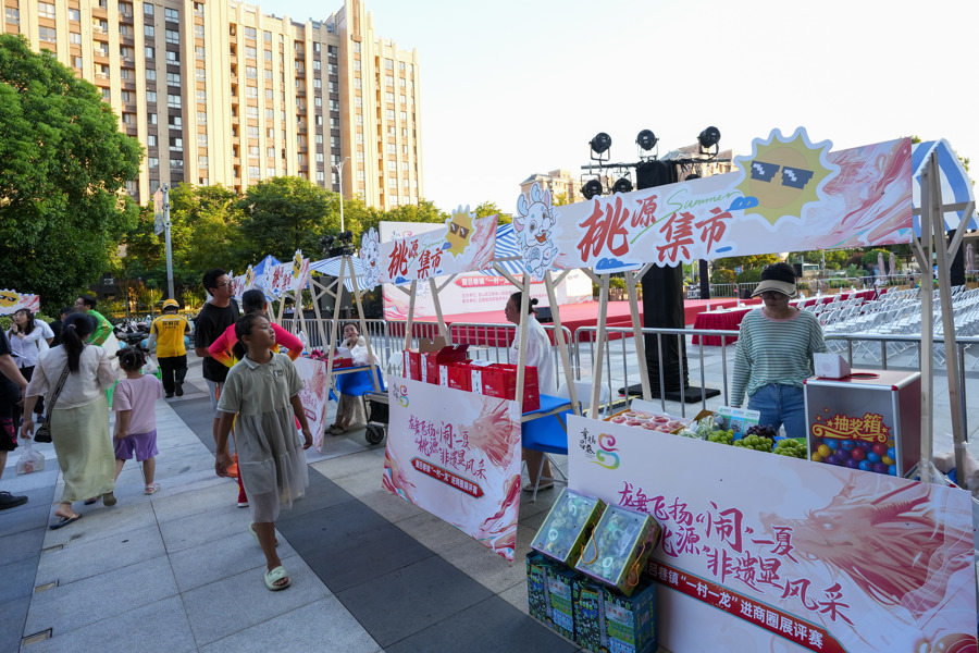 本次“一村一龙”展评赛,将小白龙信俗这一独特的非遗文化融入社区、商圈,为传统文化的现代传播与商业化融合探索了新路径。同时,当下正值吕巷地产水果大量上市,活动现场特地设立了“桃源集市”,有蟠桃、葡萄、火龙果、梨等吕巷特色水果可品尝购买,非遗项目、非遗产品可展示互动,吸引了不少市民驻足体验、购买。