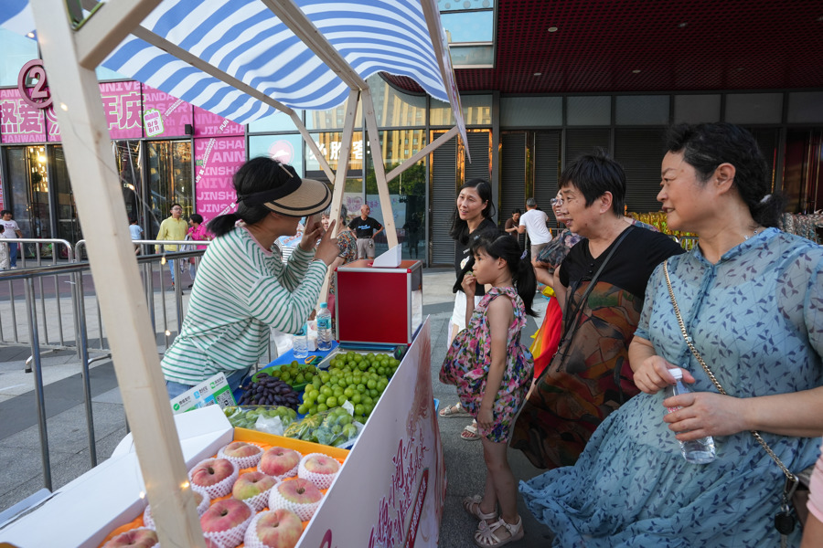“今天这里也太热闹了吧,出来逛逛街,不仅能看到这么精彩的舞龙表演,还能品尝到鲜甜的吕巷蟠桃和其他地产水果。”7月31日傍晚,在金山万达商圈,前来游玩购物的市民开心不已。
