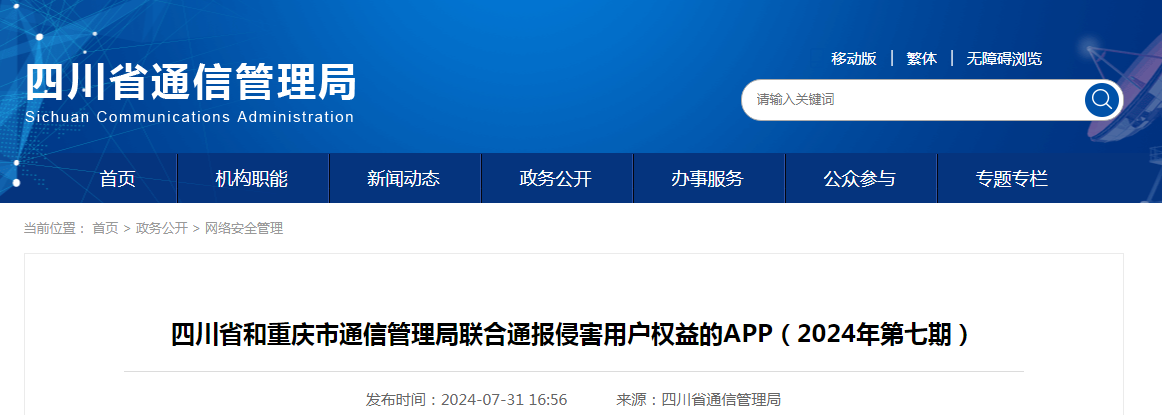 四川省和重庆市通信管理局联合通报侵害用户权益的APP(2024年第七期)