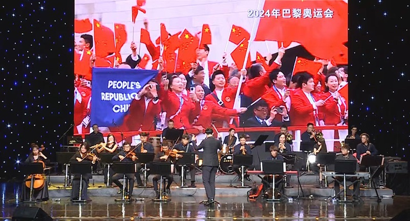 音乐会还巧妙地设置了奥运知识问答和跳绳比赛等互动环节,让观众在享受音乐的同时,更加深入地参与到奥运文化中。当歌曲《红旗飘飘》和《歌唱祖国》响起的时候,将现场氛围推向高潮,现场观众热情高涨,共同高喊“中国加油!”