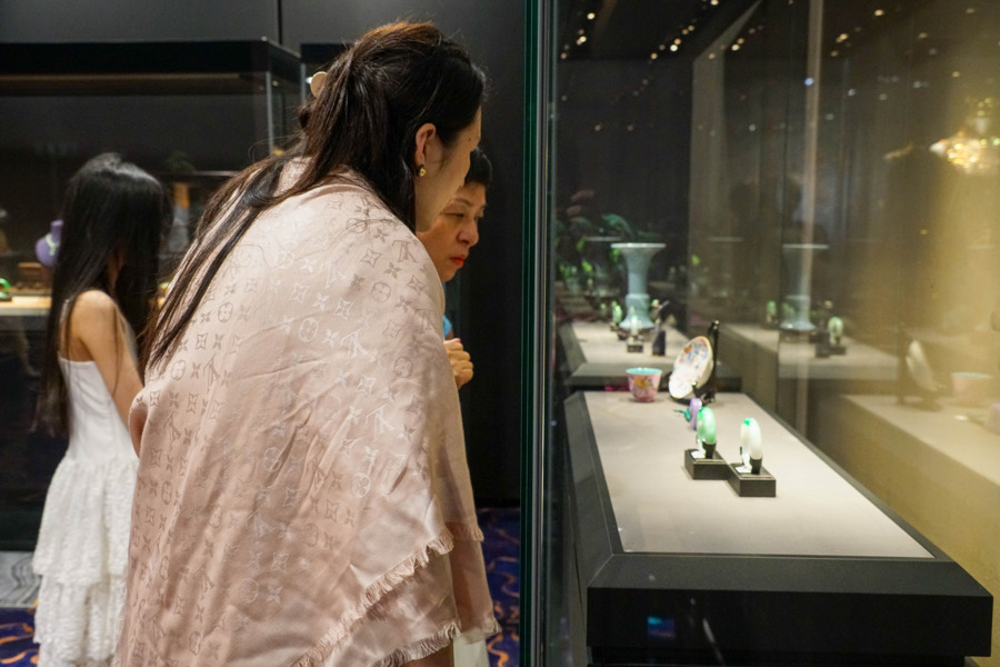 展览现场,通过场景营造与沉浸式体验探寻东方文化艺术的发展和魅力。展览挑选翡翠、明式家具、漆器、宋瓷、缂丝五大品类,为观众呈现一场提炼 “清静和雅”四大东方美学观的艺术珍品秀。其中,展出的206件香港中艺老工老料翡翠珠宝,皆出自拥有世代传承的匠人之手。“老工”这一标签代表了对传统工艺的尊重和对细节的追求。匠人们用双手赋予了材料更高的价值。