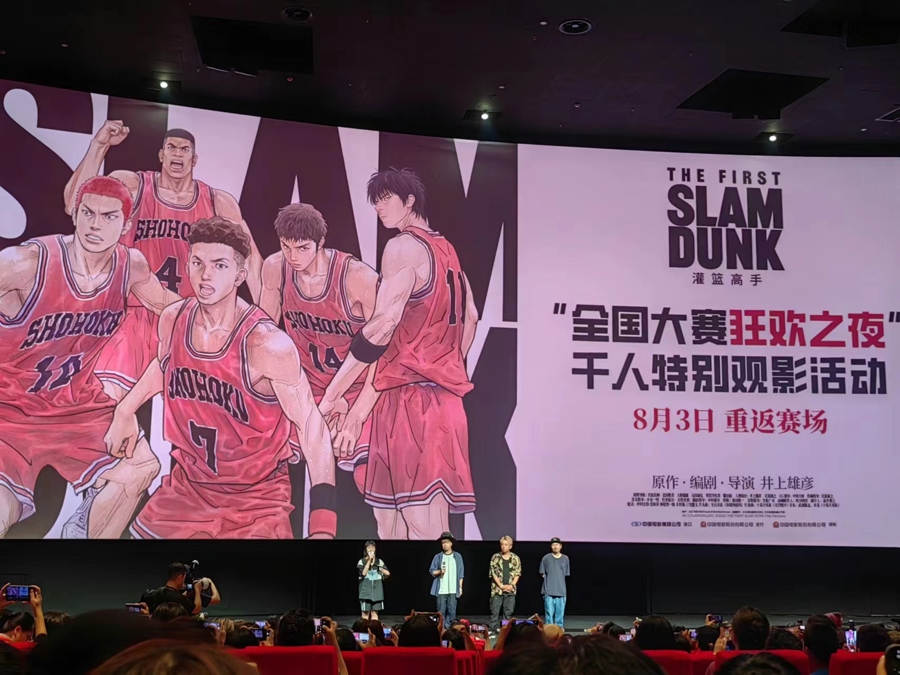 8月3日是日本动画电影《灌篮高手》中湘北与山王工业两支球队在全国大赛中对决的日子。今年影片特意选择在8月3日“重返赛场”,并于当晚在上海影城SHO千人厅举办“全国大赛狂欢之夜”特别观影活动,为影片演唱主题曲《第零感》的日本乐队10-FEET也来到现场与观众互动。