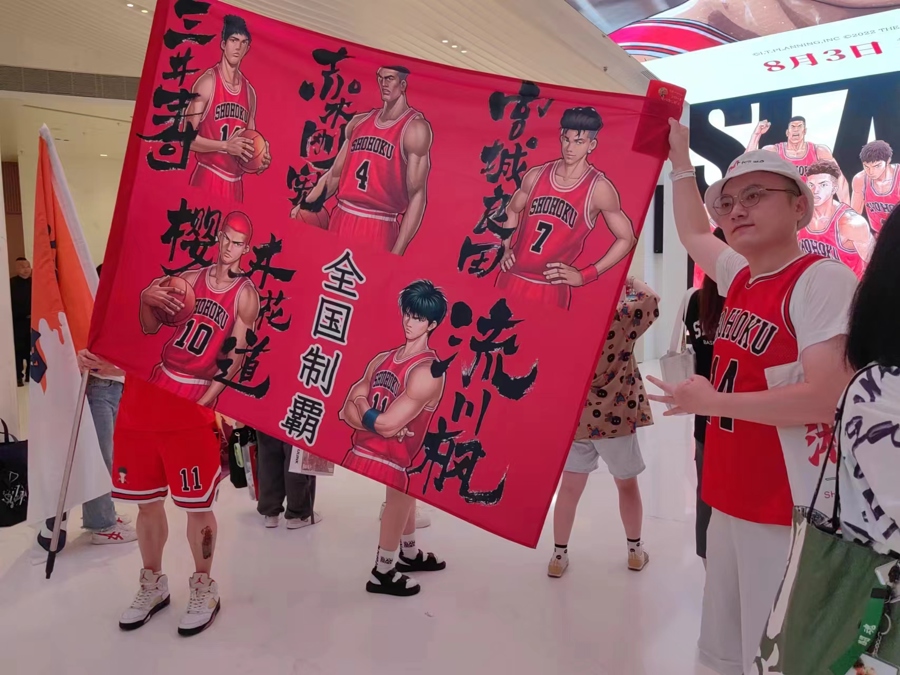 去年,每次“千人灌”举办当天,上海影城SHO的商户销售量同比增长至少50%,这些热情的影迷具有强大的消费实力。此次重映,影片限定周边同样返场,在百联ZX创趣场的GuGuGuGu店推出《灌篮高手》周边限时上新,并在商场中庭设立打卡点,吸引不少粉丝来购买。记者在上海影城SHO现场发现,不少前来观影的粉丝都穿了《灌篮高手》周边服饰,包括售价499元的湘北同款球衣,售价199元的电影同款休闲T恤等,从中能看出各自的应援角色。