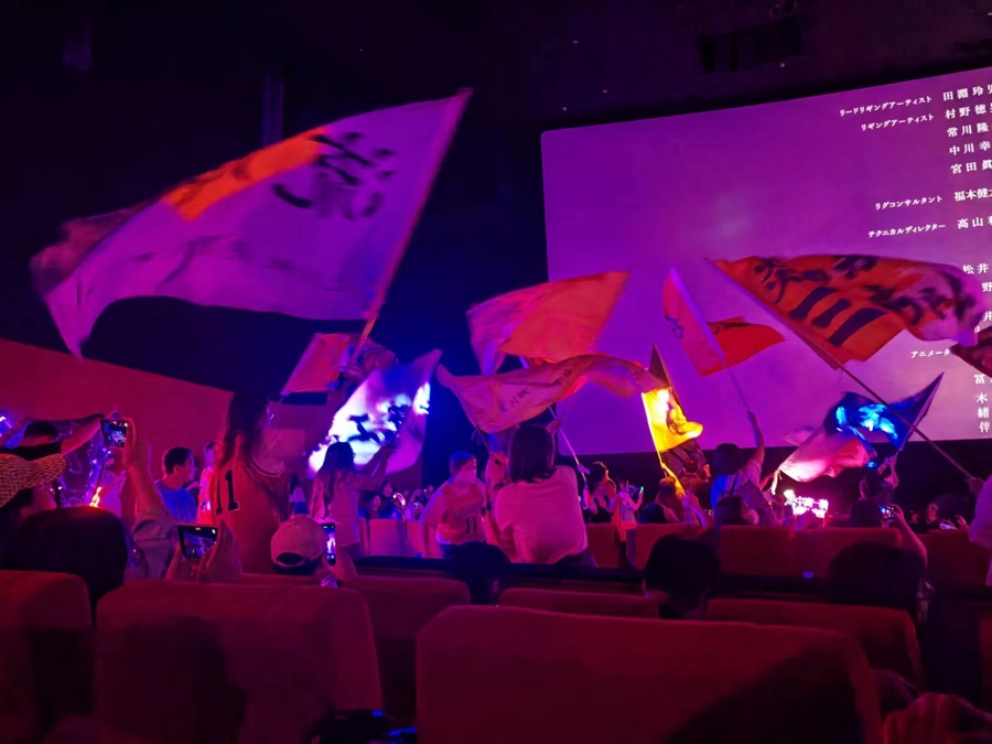 来参加“全国大赛狂欢之夜”特别观影活动的观众大都身经百战,不少人自带应援棒、旗帜等,在观影途中为喜欢角色的精彩表现呐喊助威。“80后”杰琪已经是第42“灌”,“这部作品我从1998年开始看,一直看到现在,已经有20多年了。热血运动剧情让我觉得备受鼓舞,尤其是最后这场比赛非常精彩,不想给青春留下一个遗憾。电影上映刚开始是圆自己的一个梦想,万万没想到可以和这么多同好一起观看,每次都会有新的、不一样的感动。”