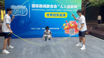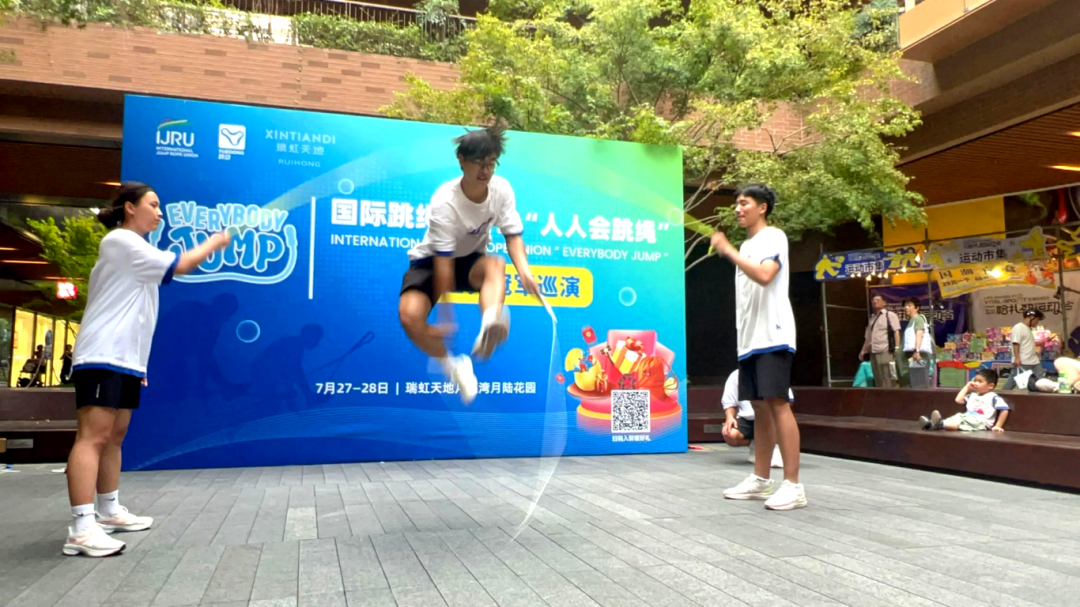 而在瑞虹天地月亮湾,一场热烈的交互绳挑战正在进行,队员们展示高难度的跳绳动作,引得观众们纷纷喝彩。现场不少小朋友们在教练的帮助下,纷纷上场完成了酷炫的交叉绳动作,玩得不亦乐乎。陪同孩子参与活动的张女士告诉记者:“我比较看重孩子身体素质方面的教育,他们平常在体校练习跳水,得知这里有跳绳活动且比较感兴趣,就带他们过来参加了。”