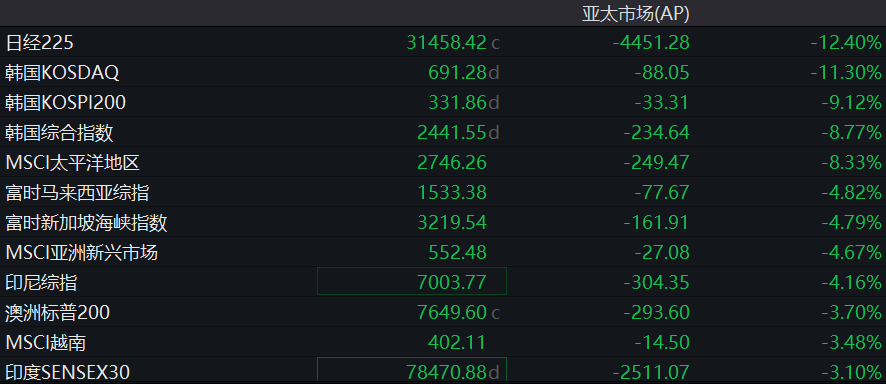 除日韩市场外,全球股市也出现集体调整。亚太市场方面,富时新加坡海峡指数、富时马来西亚综指、澳洲标普200、印尼综指、MSCI越南以及印度SENSEX30指数全线下行。