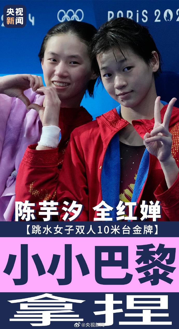 赛后,全红婵挂在陈芋汐身上退场时,复刻经典庆祝动作:“小小巴黎,拿捏!”