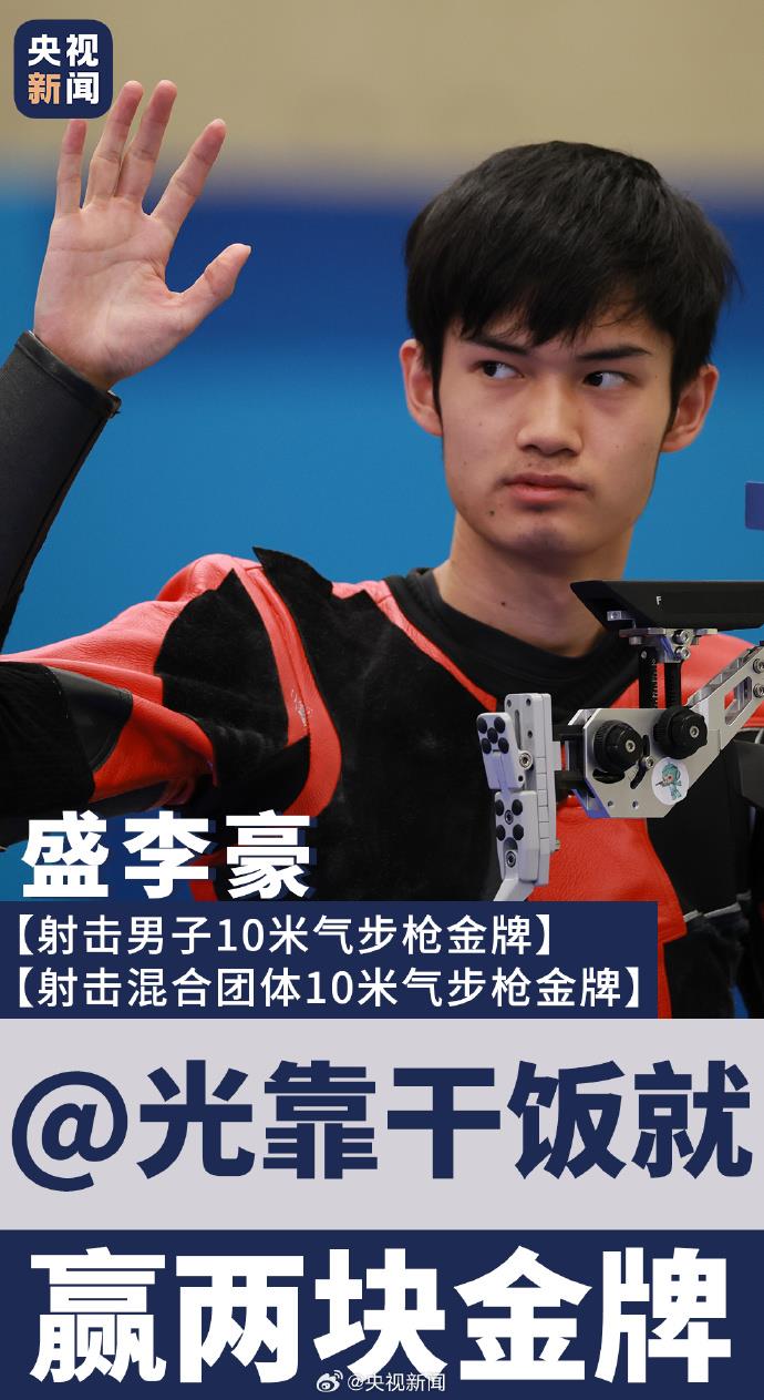 7月29日,在射击男子10米气步枪决赛中,“干饭哥”盛李豪再夺金牌,并打破奥运会纪录!