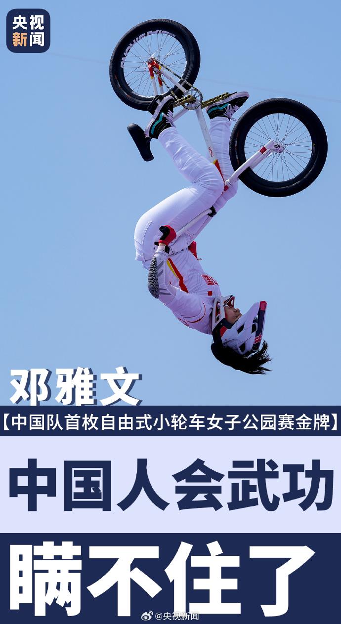 7月31日,在巴黎奥运会自由式小轮车女子公园赛决赛中,中国选手邓雅文夺得金牌,为中国队实现历史性突破。在赛场上展示“真功夫”的邓雅文表示,希望通过努力,把小轮车变成大众项目。