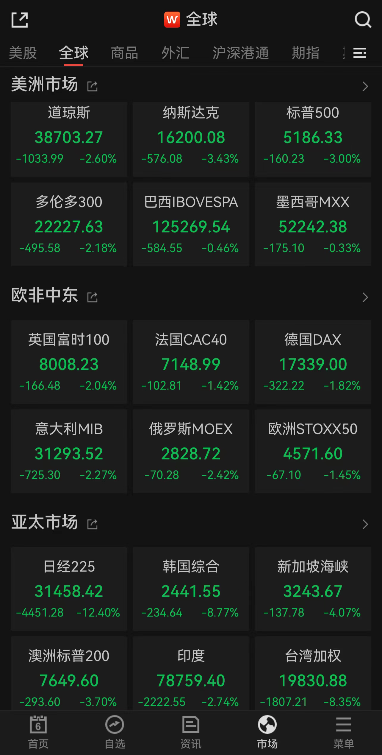 美股接棒“黑色星期一”!三大指数集体大跌,标普500指数创2022年9月以来最大单日跌幅。