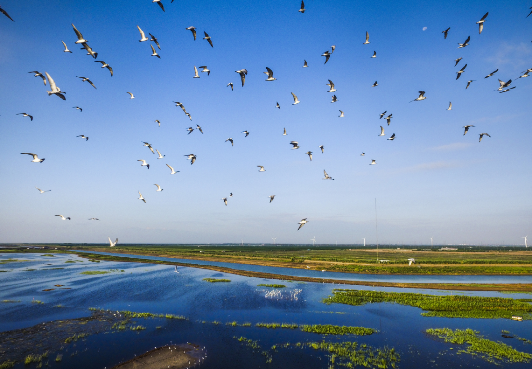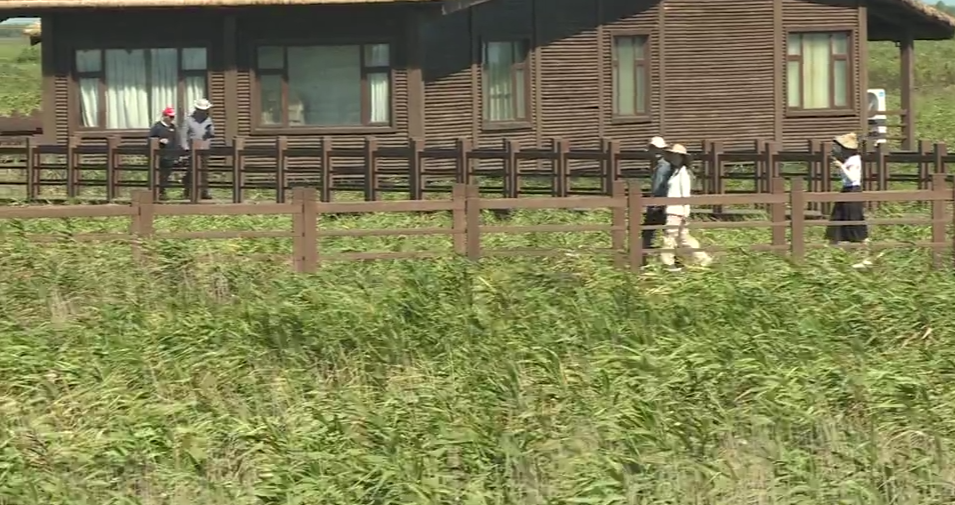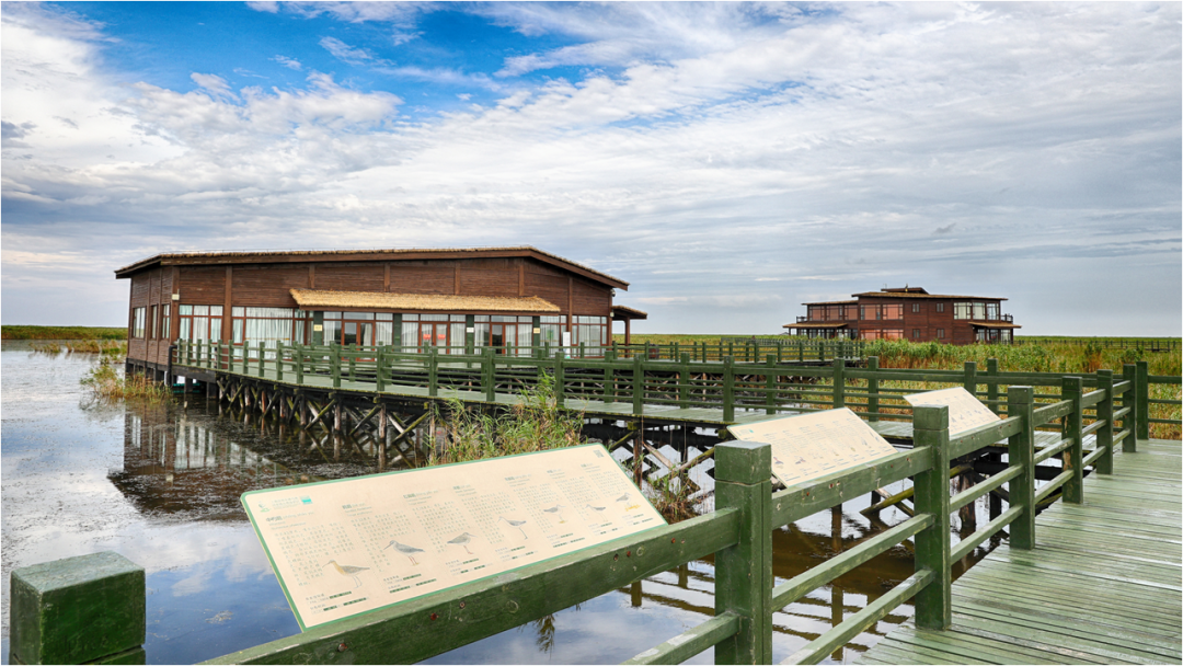 蓝天下,芦苇摇曳,鹭鸥飞翔,湿地池塘,水草丰茂,鱼翔浅底。预约而来的游客吴女士和刘先生正沿着千米木栈道,参观鸟类科普教育四个展馆,感受自然遗产的魅力。“非常自豪,这样的自然景观值得全国游客来参观。”吴女士说。