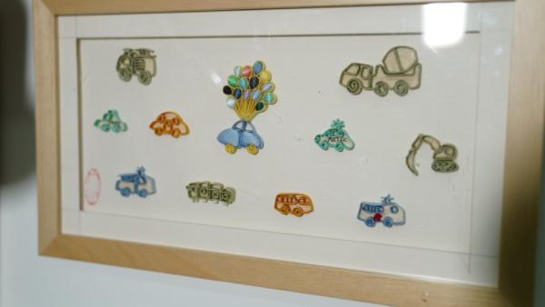 万物皆可“盘”。为了让盘扣传递“新”意,李嫱融入了不少现代元素,还从日常生活中吸纳创意。一次,儿子问她:“能不能做个挖掘机?”李嫱打开思路,做出了搅拌车、挖掘机、救护车、消防车等汽车盘扣“全家福”,并以此为契机让非遗技艺走入校园。