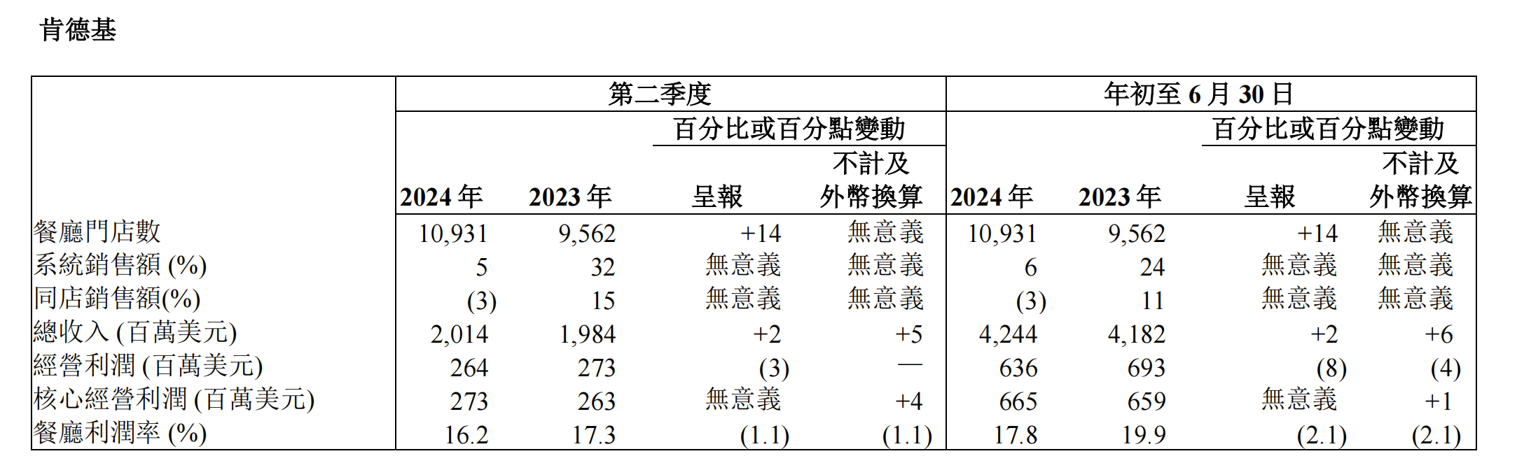 据财报披露的数据显示,百胜中国二季度同店销售额达去年同期水准的96%,同店交易量同比增长4%。