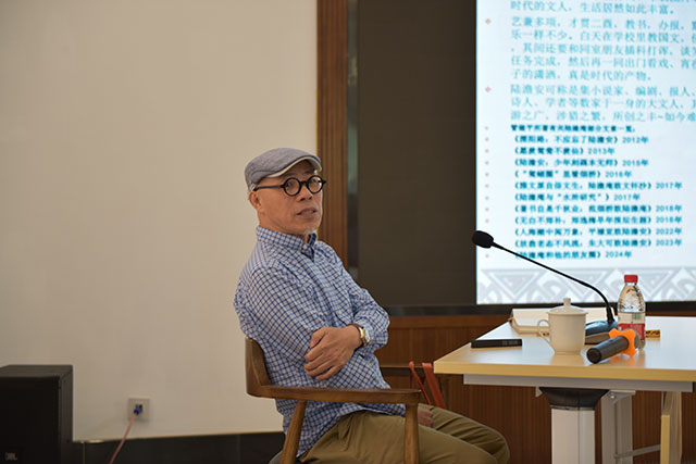 一个普普通通的周二下午,朱屺瞻艺术馆的主厅里坐满了观众。管继平从陆澹安的生平、陆澹安书信里的故事以及文人书信手稿的价值重估、陆澹安的文人个性和独立精神、陆澹安的学术研究成就等方面,还原了一个著作等身、博学旁通的陆澹安以文会友,以学续缘的精彩人生。