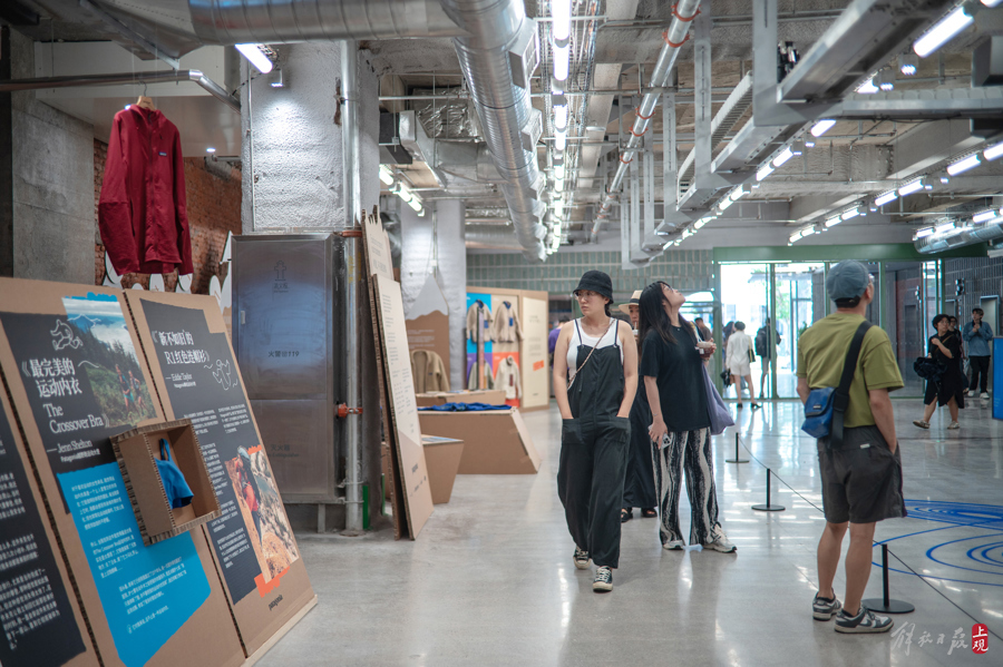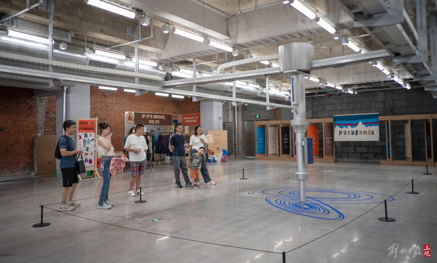 HAI550的一层是一个400多平方米的开放公共空间,目前正在展示一件以坛城沙画为灵感的艺术装置,同期举办由知名户外品牌巴塔哥尼亚和循环再生品牌多抓鱼联名的环保主题展。