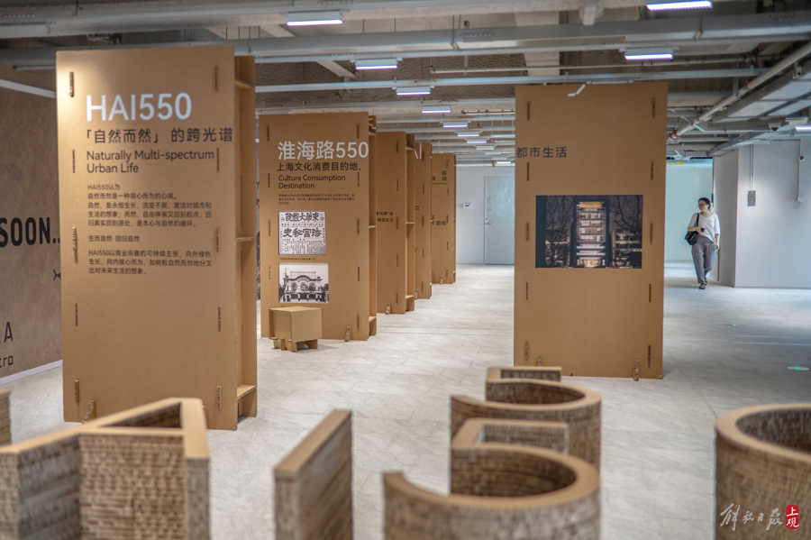 7楼“淮海路550号建筑主题展览”讲述了这栋建筑的前世今生。以环保为体,时尚为用,打造成上海文化消费目的地的自我定位。