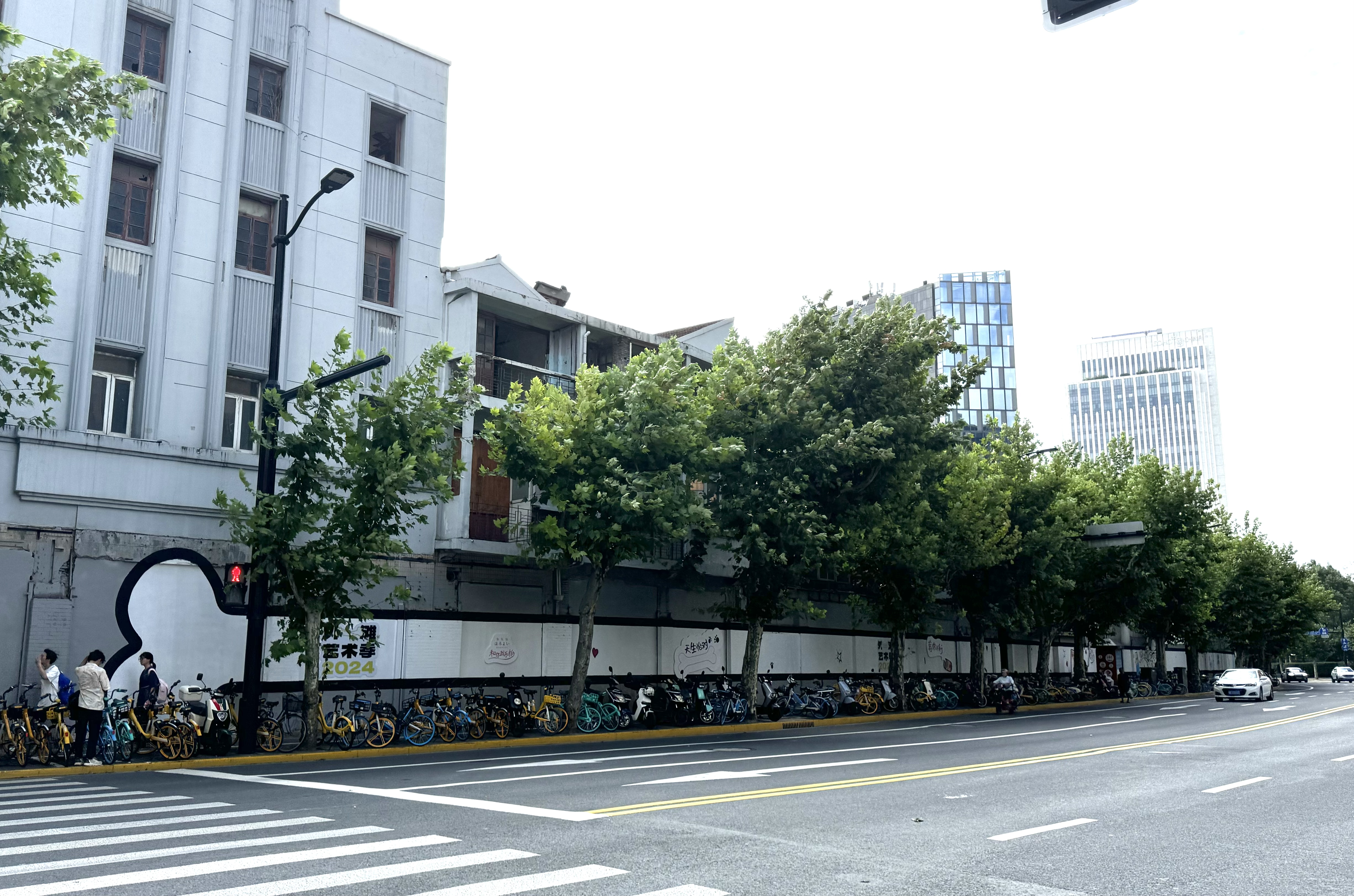 这面骨头墙绘如何而来?Tango介绍,由于围墙内是待改建的建筑,不能做任何搭建,所以在墙上绘制了这样一根长骨头,与狗的主题相连接。如果是像“猫街”一样画很多小动物,会引发市民游客的互动,但考虑到人行道不宽,边沿还有自行车停放区域,产生互动的话会有安全隐患。现在把巨型骨头绘制在墙面上,大家只有在马路对面才能看完整,既达到了欣赏的目的,也可以兼顾安全性。