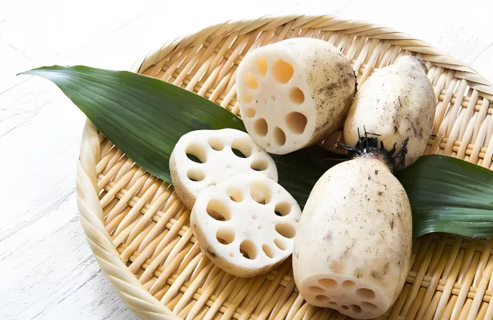 原料:猪脊骨500g,藕500g,精盐、葱段、生姜片、黄酒、味精各适量。(3—4人份)