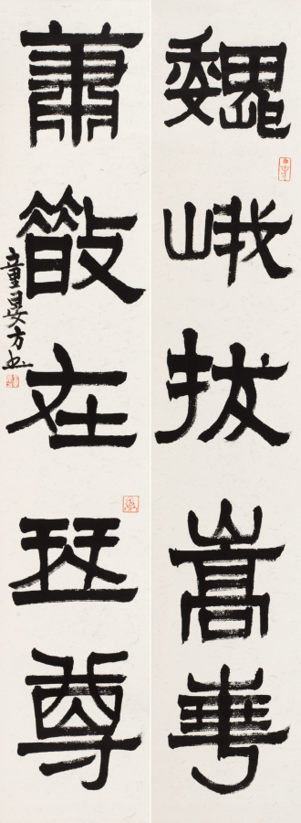 隶书五言联(书法) 童衍方