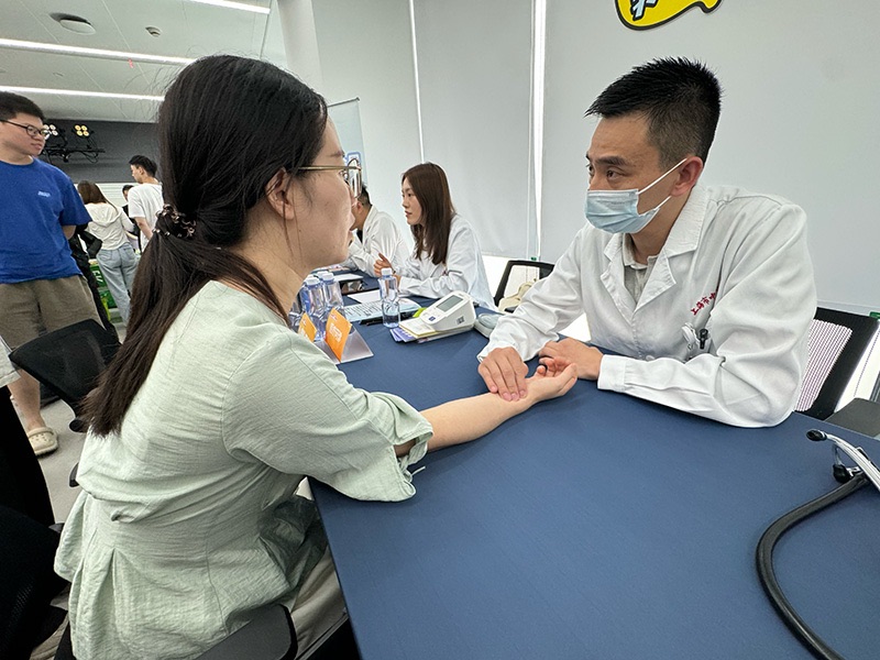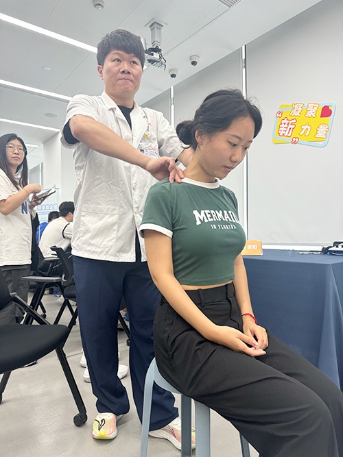 记者在现场看到,来自上海市中医院的青年志愿服务队的医生们,耐心地为每一位青年提供个性化的健康咨询。医生们介绍,根据此前义诊情况,两企三新青年最常见的问题是肥胖、脱发、内分泌失调、肩颈问题等,在活动现场也带来免费药方、外用药膏、推拿按摩等服务,以此提醒年轻人关爱身体健康。