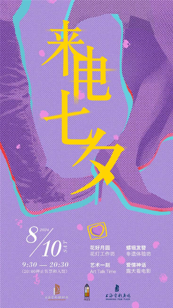 “来电·七夕”,跨界艺术的浪漫碰撞 8月10日是传统七夕节,上海电影博物馆联合徐家汇源国家AAAA级旅游景区、上海电影广场,将于当日推出“来电·七夕”特别活动。电博不仅将开放浪漫夜场,延迟闭馆至20:30,更有艺术趣谈、露天电影放映、艺术工作坊、非遗体验坊等活动。