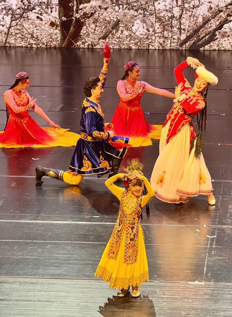 东方网记者曹磊8月9日报道:近日,一场以“多彩非遗耀丝路 魅力歌舞谱华章”为主题的沪喀文化交流活动在上海国际舞蹈中心实验剧场精彩上演,犹如一道绚烂的文化彩虹,架起了上海与喀什之间的心灵桥梁。 在这场文化盛宴中,6 岁的古丽娜孜无疑是一颗耀眼的明星。她身着精美服饰,轻盈灵动地跳起乌孜哈勒木卡姆片段《欢度佳节》,将观众带入梦幻般的世界。这位从小受父母艺术熏陶、且在央视节目中亮过相的小艺术家,用她的纯真与热情展现了新疆艺术的独特魅力。 来自新疆的艺术家们带来了一系列极具民族特色的演出,乐器合奏《春天》宛如春风拂面,女子群舞《朱拉》尽显风情,乌孜别克舞蹈《埃西莱叶莱》婀娜多姿,新疆民歌串烧《一杯美酒》热情洋溢,喀群赛乃姆《丰收的喜悦》传递着对美好生活的向往。而上海歌舞团也毫不逊色,《忆江南》《采茶舞曲》等歌曲尽显江南文化的悠扬韵味,舞蹈《渔光曲》更是展现了爆款舞剧的魅力。