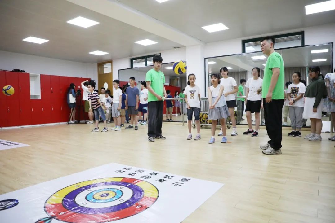 “今年的爱心暑托班恰逢正在巴黎举办的奥运会,所以我们这次在课程设计上也结合了一些和奥运相关的元素。”来自上海师范大学体育学院团委的孙一凡告诉记者,在今年的奥运会中,中国队夺得的首金是射击项目,带班老师便别出心裁地把排球和射击进行了结合,专门制作了一个标靶,让小朋友们通过排球垫球的方式击打靶环。
