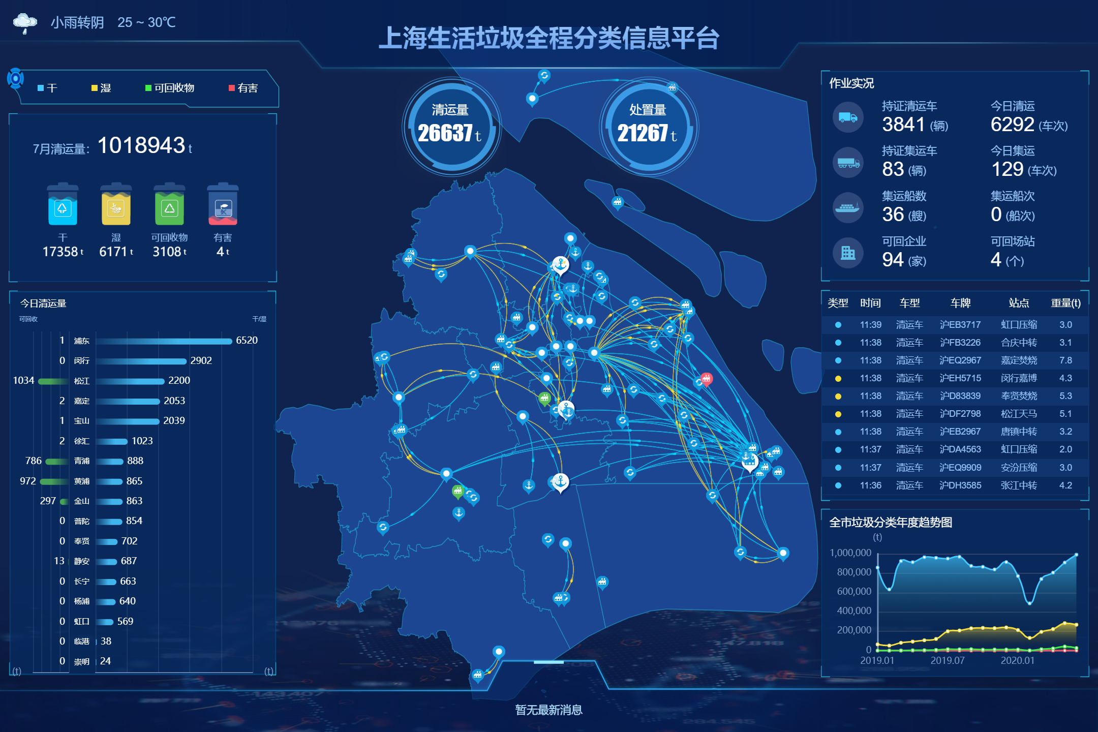 上海生活垃圾分类运输处置“智慧物流”系统。