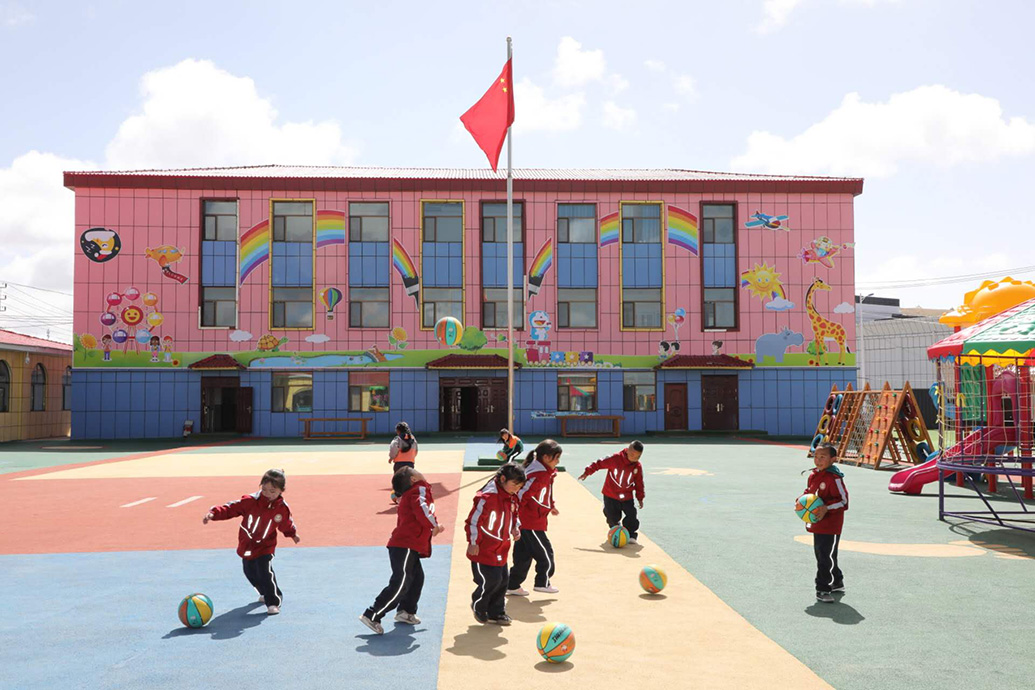 玛多县幼儿园的孩子们在操场玩耍。 受访者 供图