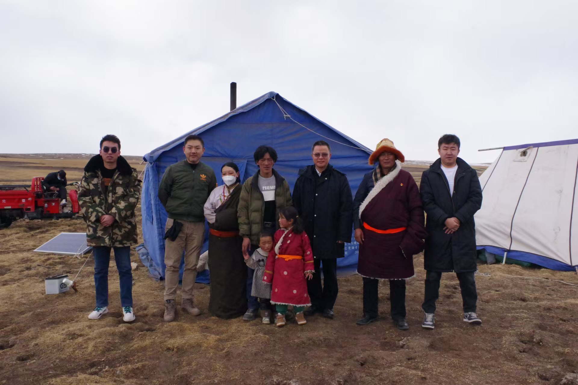 2023年11月,王启洋(右三)、徐智杰(左二)走访当地牧民家。 受访者 供图