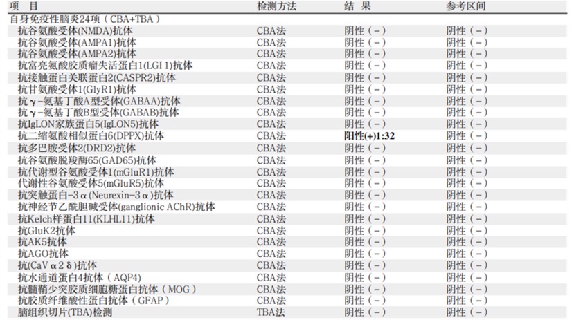 图2 脑脊液自免脑抗体24项提示DPPX抗体阳性