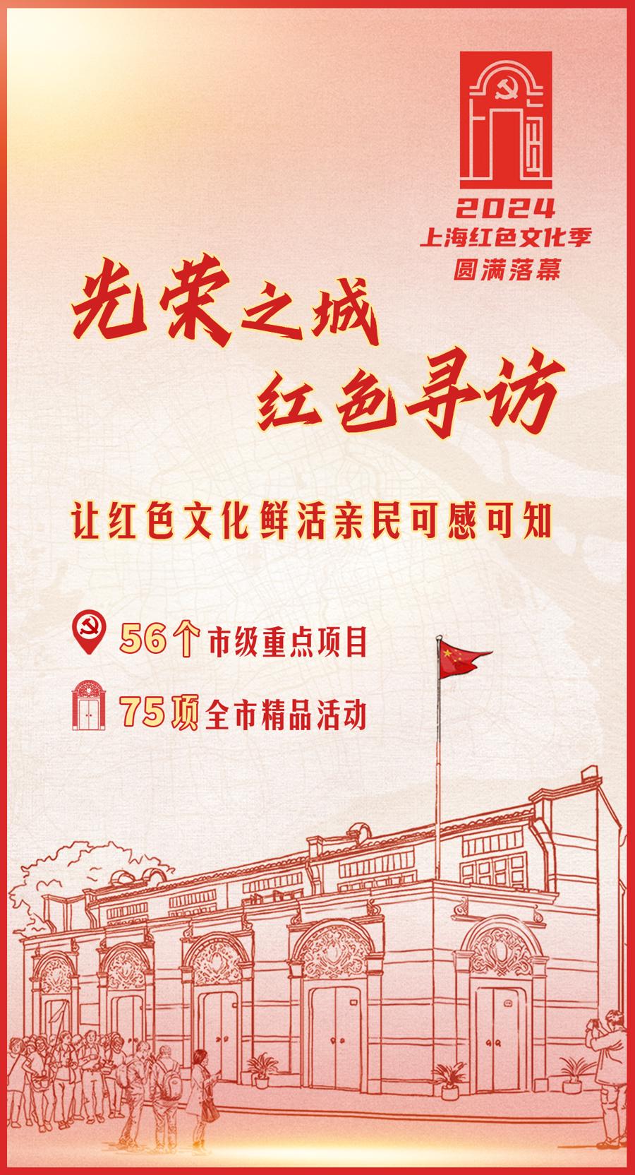 今年5月至7月,市委宣传部、市委党史研究室、市文化和旅游局联合开展“光荣之城”2024上海红色文化季,充分挖掘红色文化资源,围绕研究出版、展览展陈、文艺影视、社会宣教、思政研学、旅游文创六大板块,推出56个市级重点项目和75项全市精品活动,各区也因地制宜推出一批特色活动,在全社会营造传承光荣传统、赓续红色血脉的浓厚氛围。