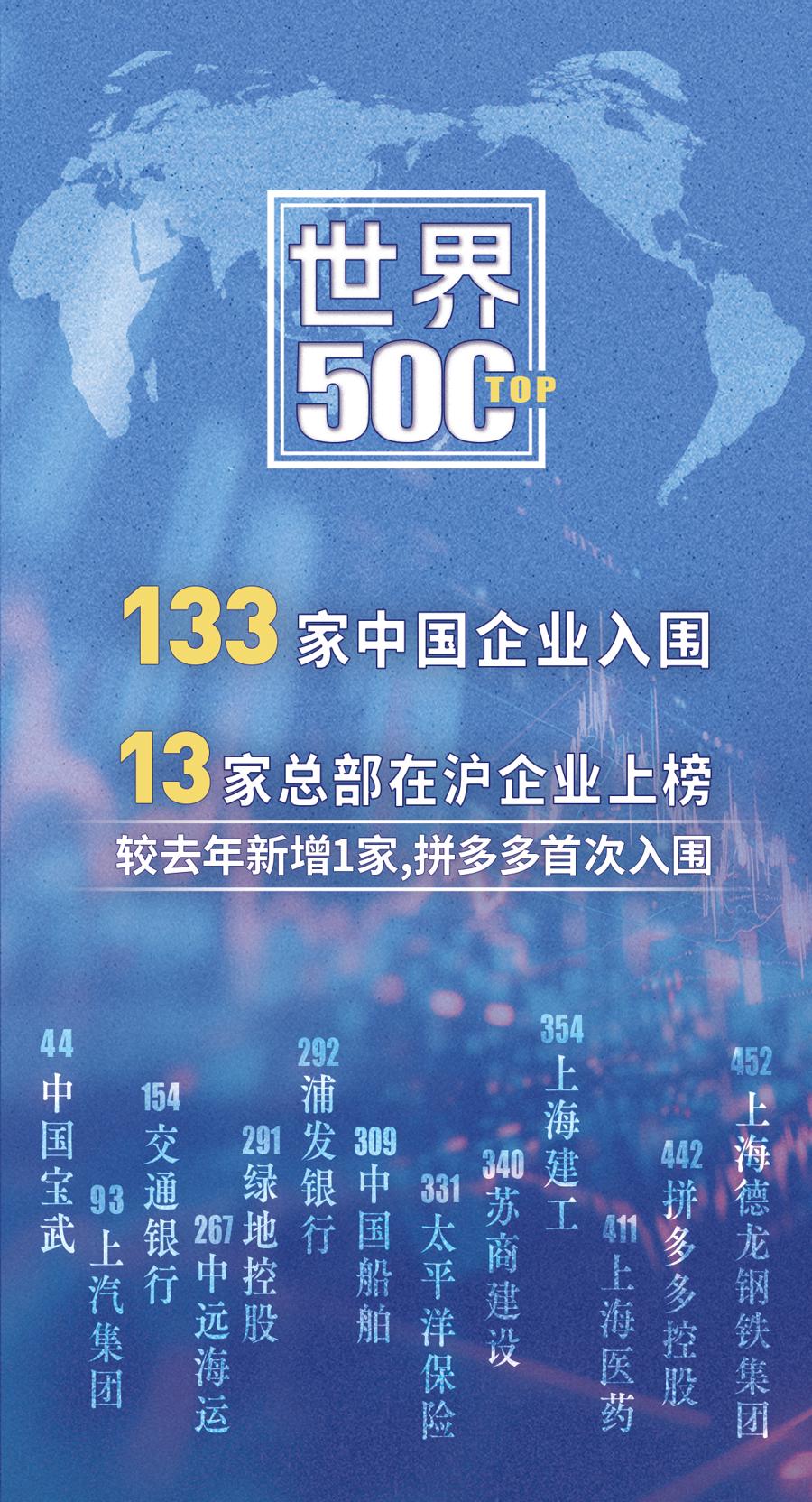 8月5日,《财富》杂志公布了最新世界500强企业名单。根据全球企业2023年度财报,以企业总营收为依据,中国共有133家企业入围世界500强。其中,总部位于上海的企业共计13家,较去年增加1家,为首次入围的拼多多。