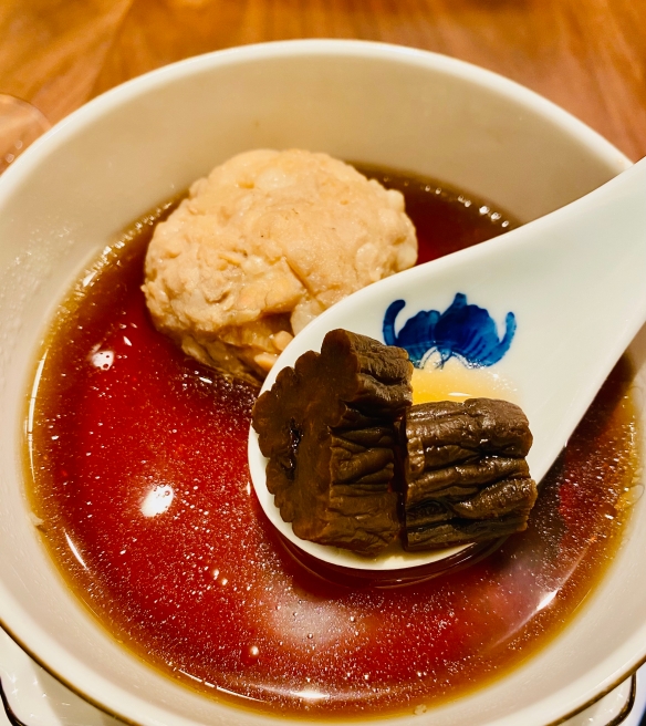 前不久在某餐厅喝到一款汤品:溏心萝卜炖黄鱼狮子头,这是淮扬菜与粤菜的天作之合。色呈琥珀,味道清雅,恰似空谷幽兰。作为汤品的灵魂食材,溏心萝卜像吉品鲍那样软糯而有弹性,无筋无渣。享有“南粤厨神”美名的梁健宇师傅从广州来上海,拉杆箱里塞了十斤网上买不到的溏心萝卜。