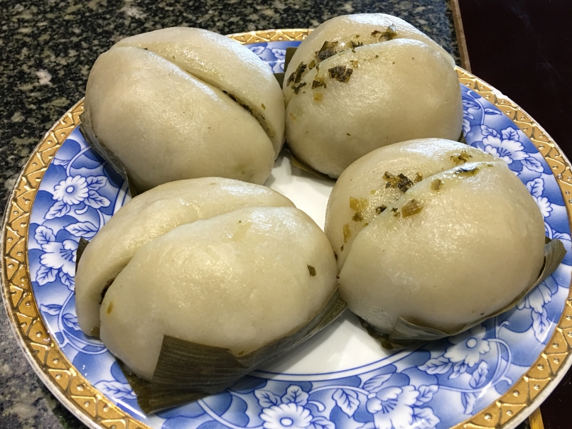 在苏州一条宁静的小巷里看到一位苏州好婆在晒菜干,斑驳的白墙前穿起一根根线绳,香青菜像一只只绿鹦鹉停在上面。香青菜晒干就是菜花头,煮汤、烧肉都是极好的。后来在饭店里吃到又糯又香的菜花头团子,厨师说,菜花头都从民间收来。
