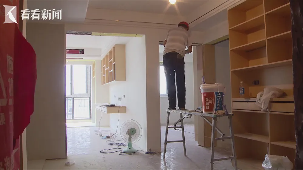 这套房的四个隔断房内,都加装了厨卫浴设施。而另一套,也在次卧的阳台上加装了马桶和淋浴。还有一些房屋正在装修中,室内已经砌起了隔断墙。“这边两间是独立卫生间,这堵(墙)就是一层砖,卫生间在阳台上,到时候会在这里弄个卫生间,这里可以简单做下饭。”中介现场介绍道。