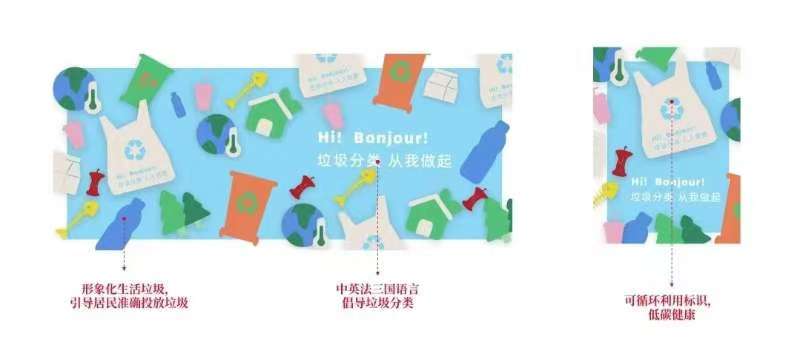 在巴黎奥运举办之际,“法国设计师走进闵行古美社区”,在闵行古美城市家具创意设计产业园——“一号具谷”,围绕“用设计创造美好生活”的主题,与中国的同行交流设计、创意、文化与友谊。法尚设计团队的方案包括用形象化生活垃圾,引导居民准确投放垃圾;以中、英、法三国语言,倡导垃圾分类;采取可循环利用标识,倡导低碳健康;把护栏的外框用色彩鲜明的法国蓝、中国红统一;设计流动的电影胶卷寓意戛纳电影文化长河。这些丰富的设计语言全面阐释了如何更新城市家具和科学分类垃圾。整个方案具有简洁明了和内涵丰富的特点,既解决了环境易脏、标识不清晰的痛点问题,又蕴涵了浪漫、热情、时尚的法兰西文化,同时,很好控制了成本,体现出高超的设计水准。