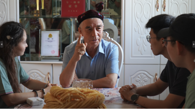 买买提江·吾买尔老先生给实践团队分享经验。李蕴海供图