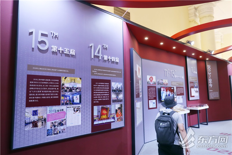 上海书展今年迎来第20届,往届点滴被布置成了一场小型展览供市民读者回顾。