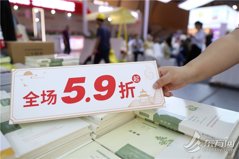 此次展销书籍的数量近3万本,许多展商早早把打折席卡放置在图书旁边。“全场5.9折起”,甚至还有“3.5折,冲”等字样,让读者享受“淘书”之乐。