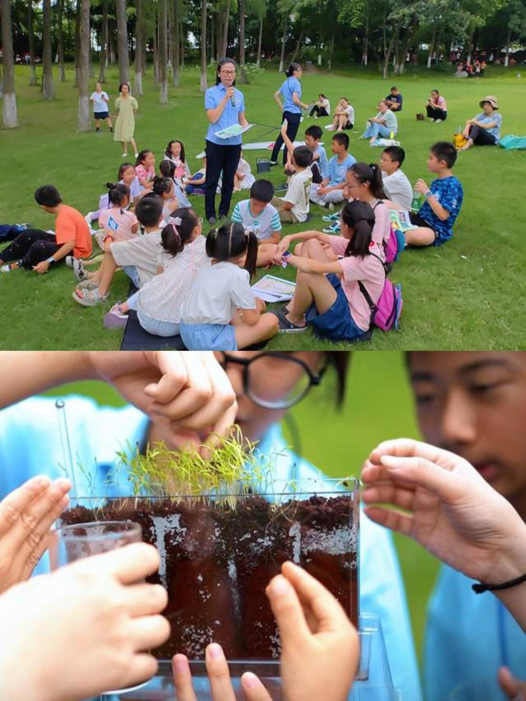 最后的“趣味手工:生态瓶微景观”环节,则是孩子们将理论智慧转化为实践艺术的奇妙时刻。他们小心翼翼地将稚嫩的小苗栽植在瓶内,每一个动作都充满了对生命的尊重与爱护。